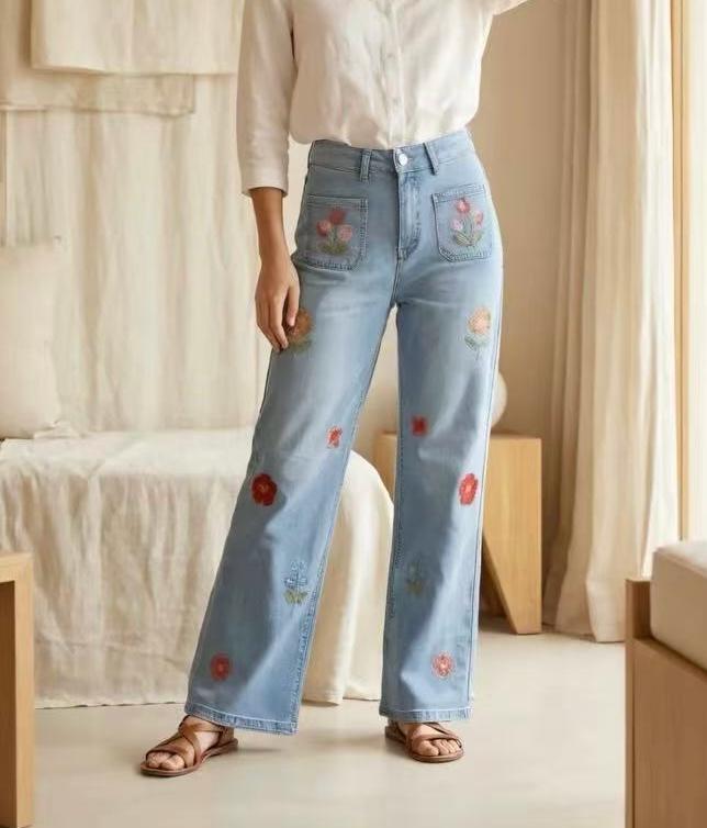 • Calça flores wide leg