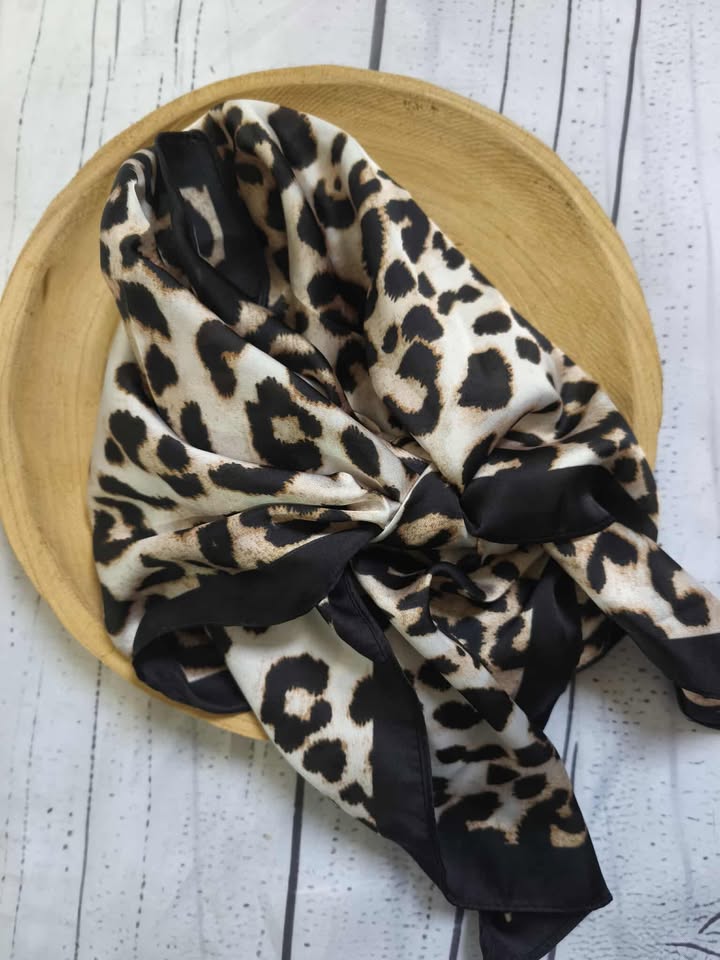 Lenço animal print ,muito versátil podes usar no pescoço, cabeça, mala , cintura.