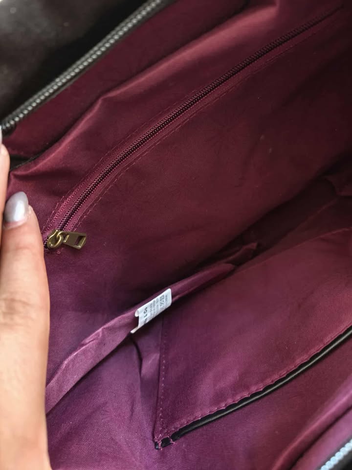 COntém fecho, forro interior em bordeaux , mt diferente e bonito