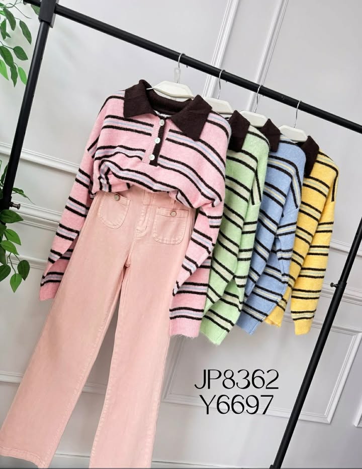 • Polos em malha com riscas castanhas